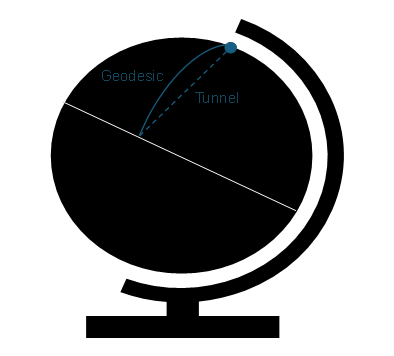 Still with me? The lines we've been travelling along, whether flying to the North Pole or driving around a ring track have a nerdy name- they're called "world lines" or "geodesics." A world line belongs to a specific object or person and charts their position in space-time for their entire existence. Geodesics are properties of space-time and follow the curvature of space. They provide the shortest distance between two points accounting for the curvature of space-time.